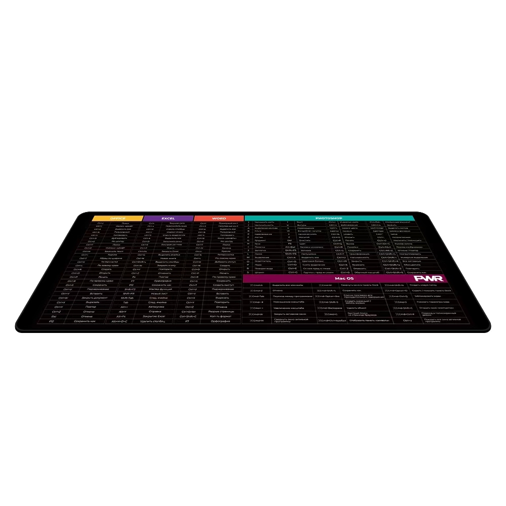 Коврик для мыши PWR Shortcuts Pad — удобный коврик с напечатанными подсказками горячих клавиш . Помогает быстрее работать за компьютером и запоминать основные сочетания клавиш. Подходит для офиса, учебы и дома.
